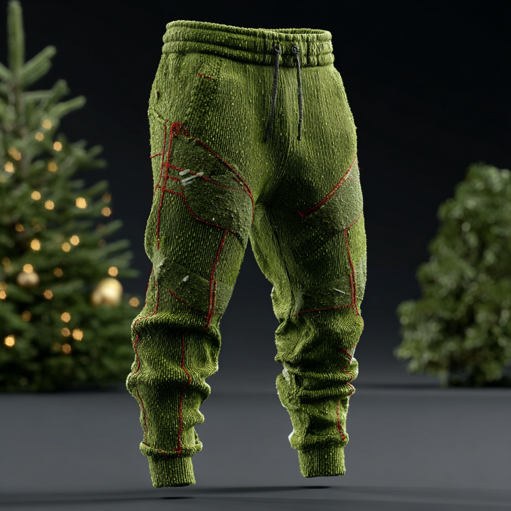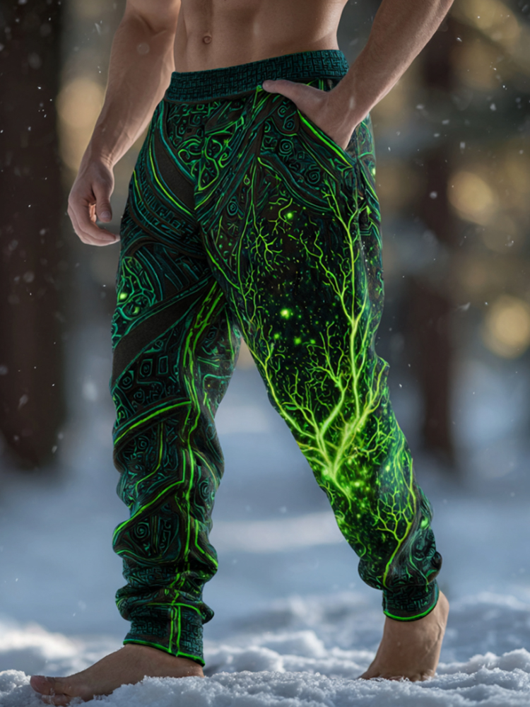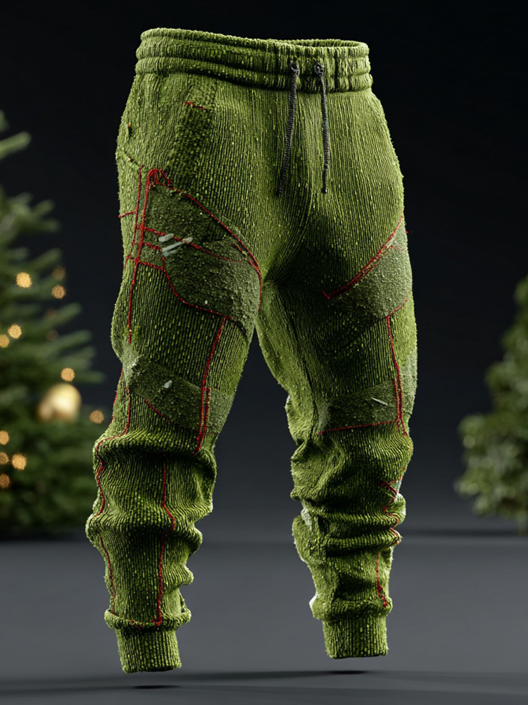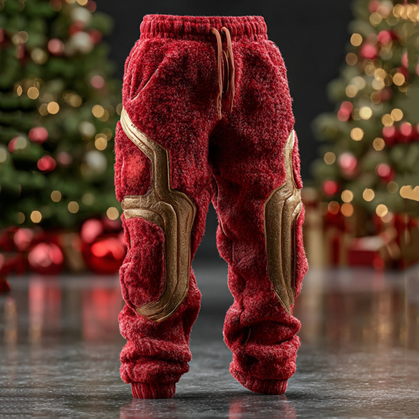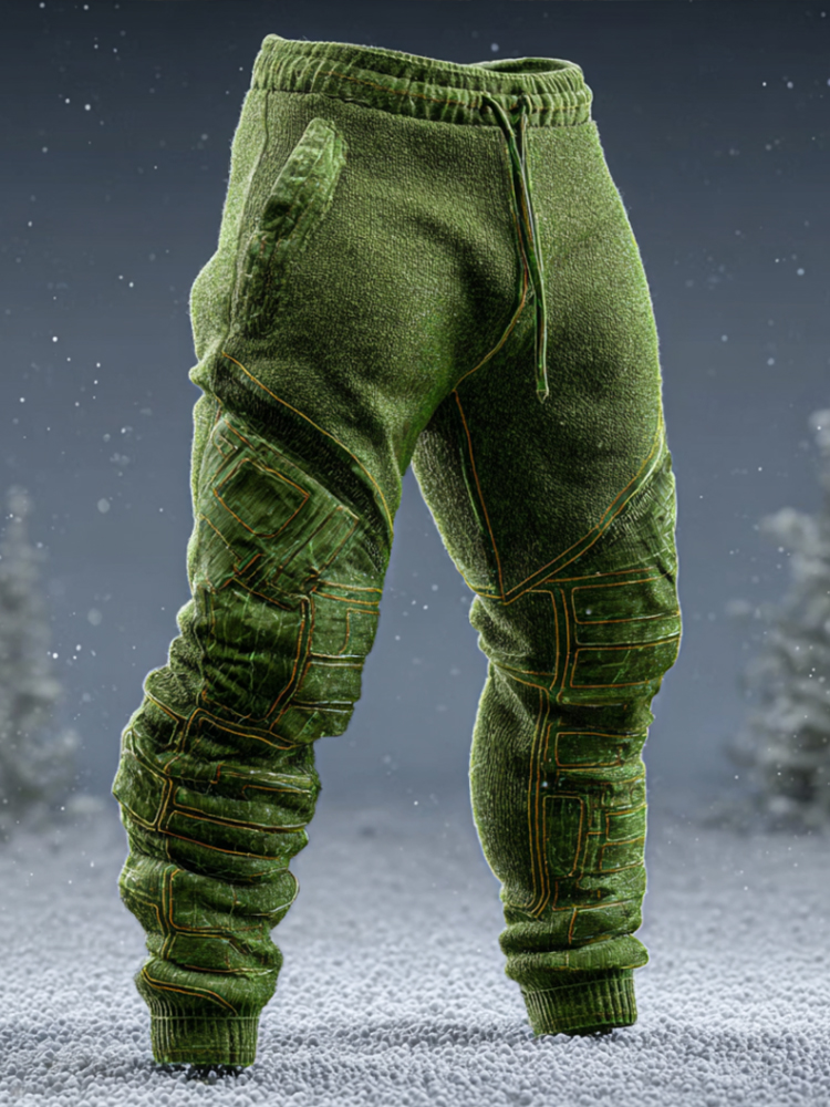 Men's Christmas Metallic Line Art Knitted Plush Pants