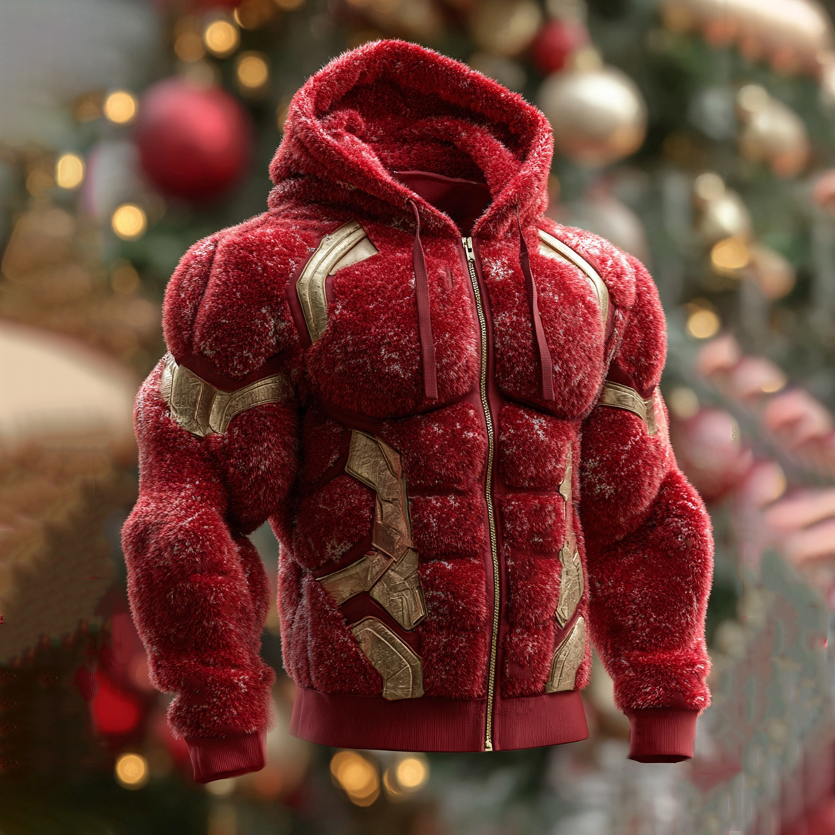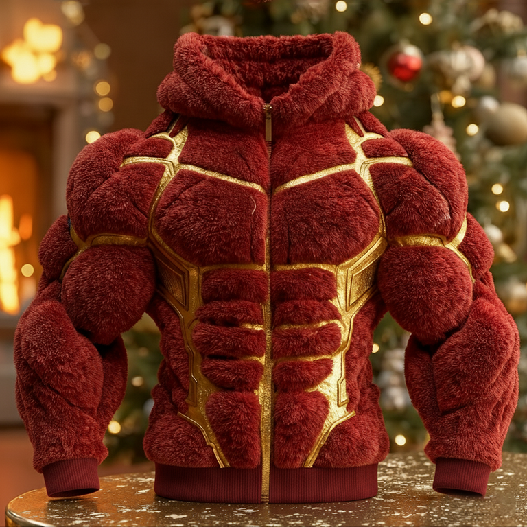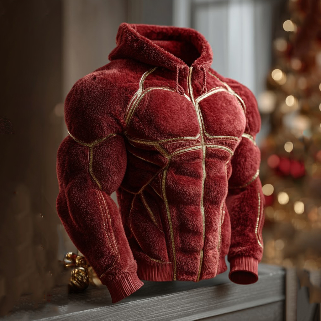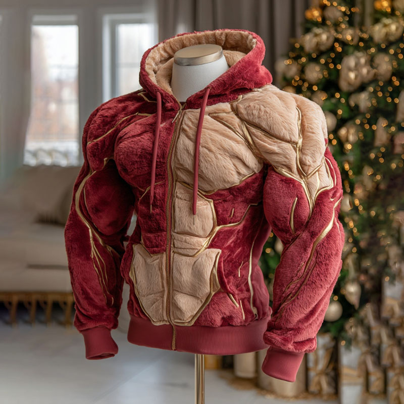 Christmas Muscle Art Plus Velvet Thick Cardigan Hooded Sweatshirt