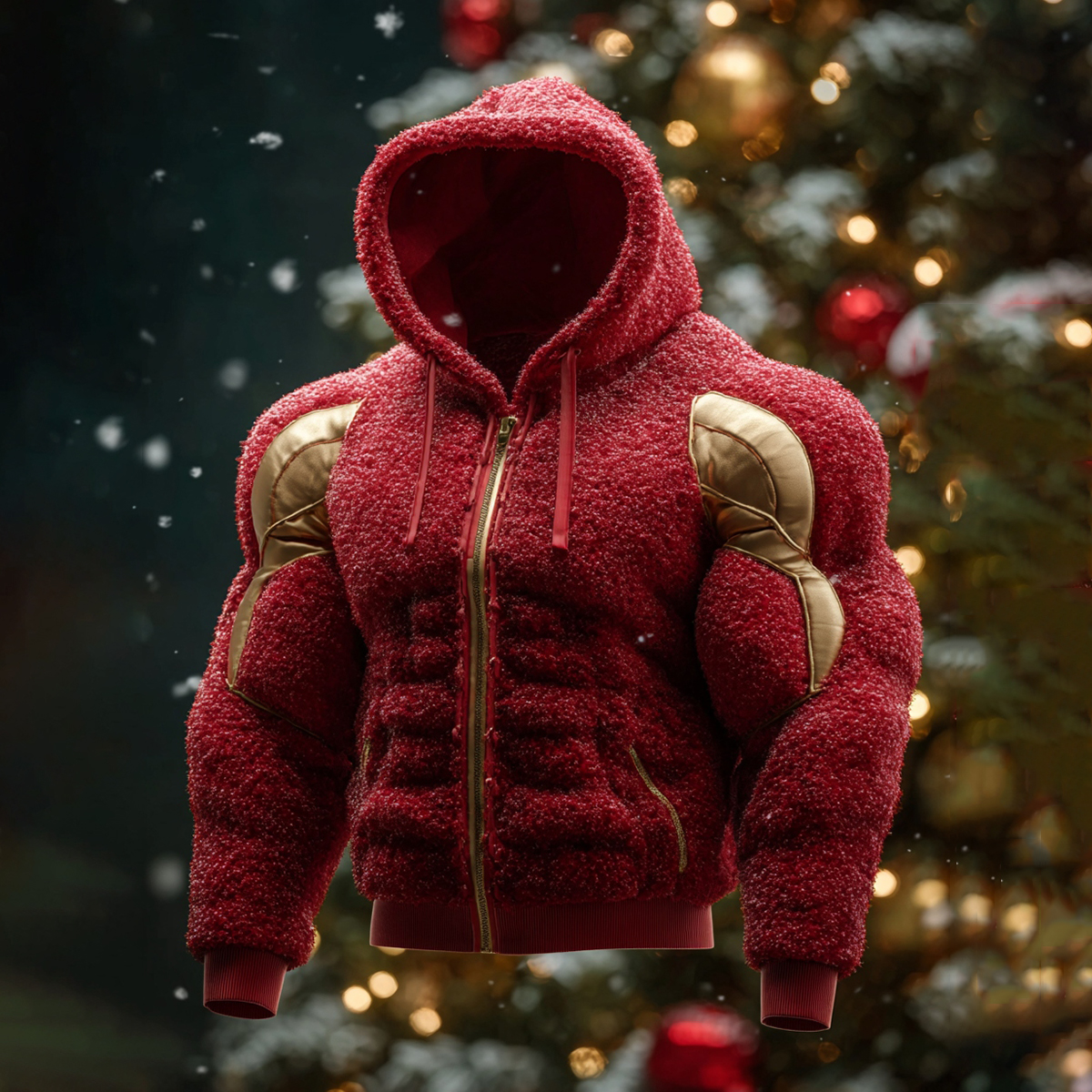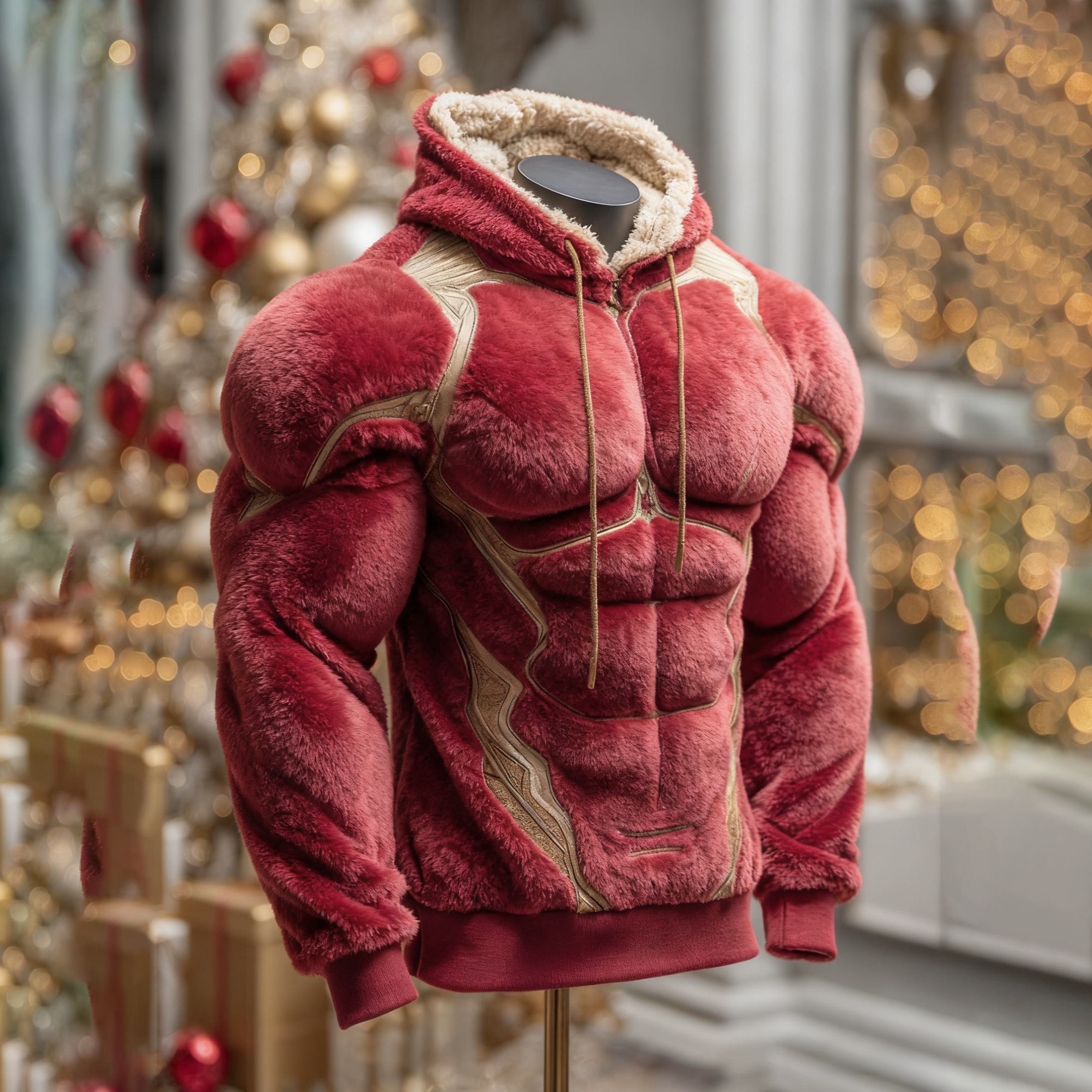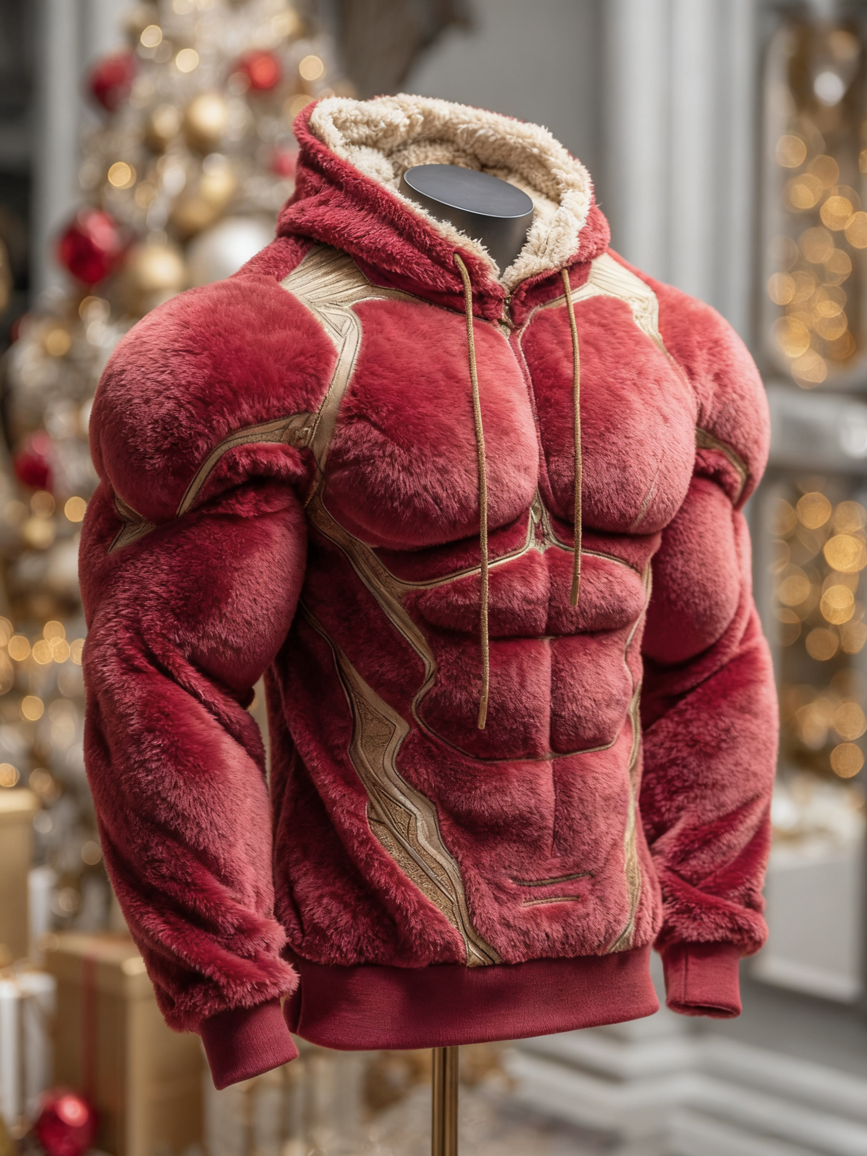 Christmas Muscle Art Plus Velvet Thick Cardigan Hooded Sweatshirt