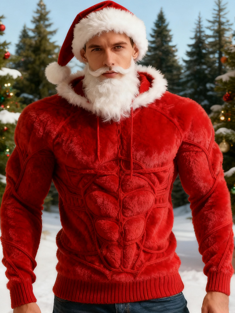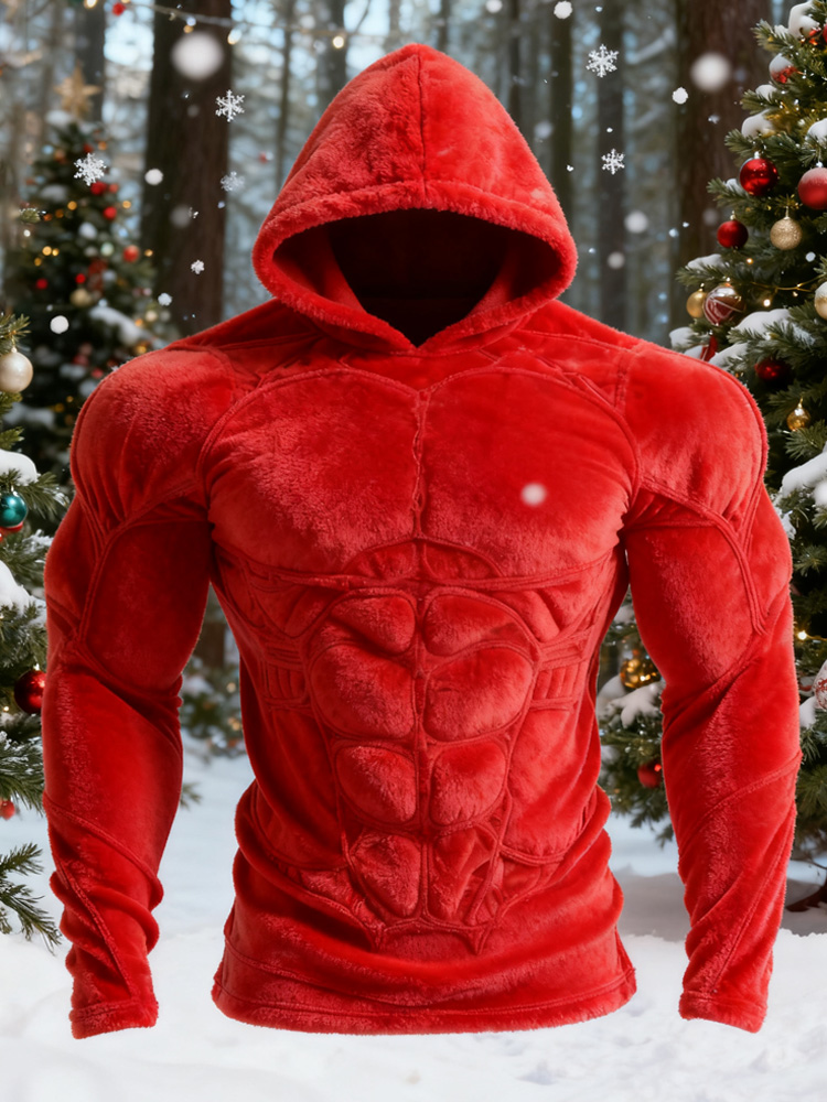 Men's Christmas Muscle Line Art Flannel Hooded Sweater