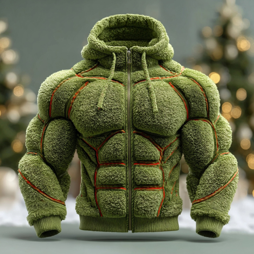 Men's Christmas Green Muscle Line Cozy Plush Full Zip Hoodie