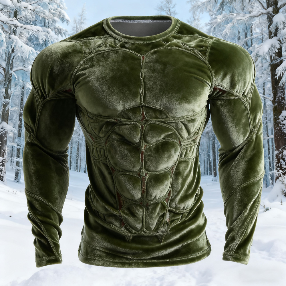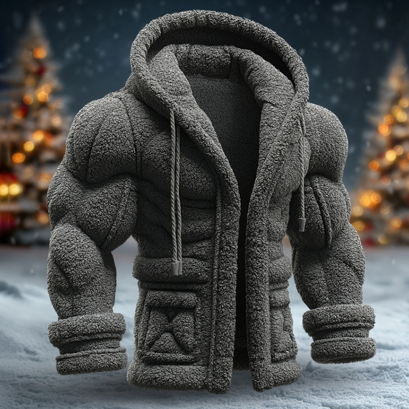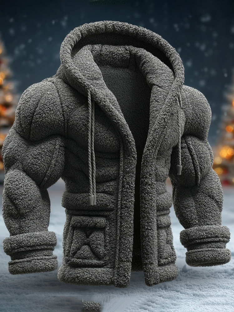 Men's Muscle Texture And Rock Art Plush Insulated Hoodie