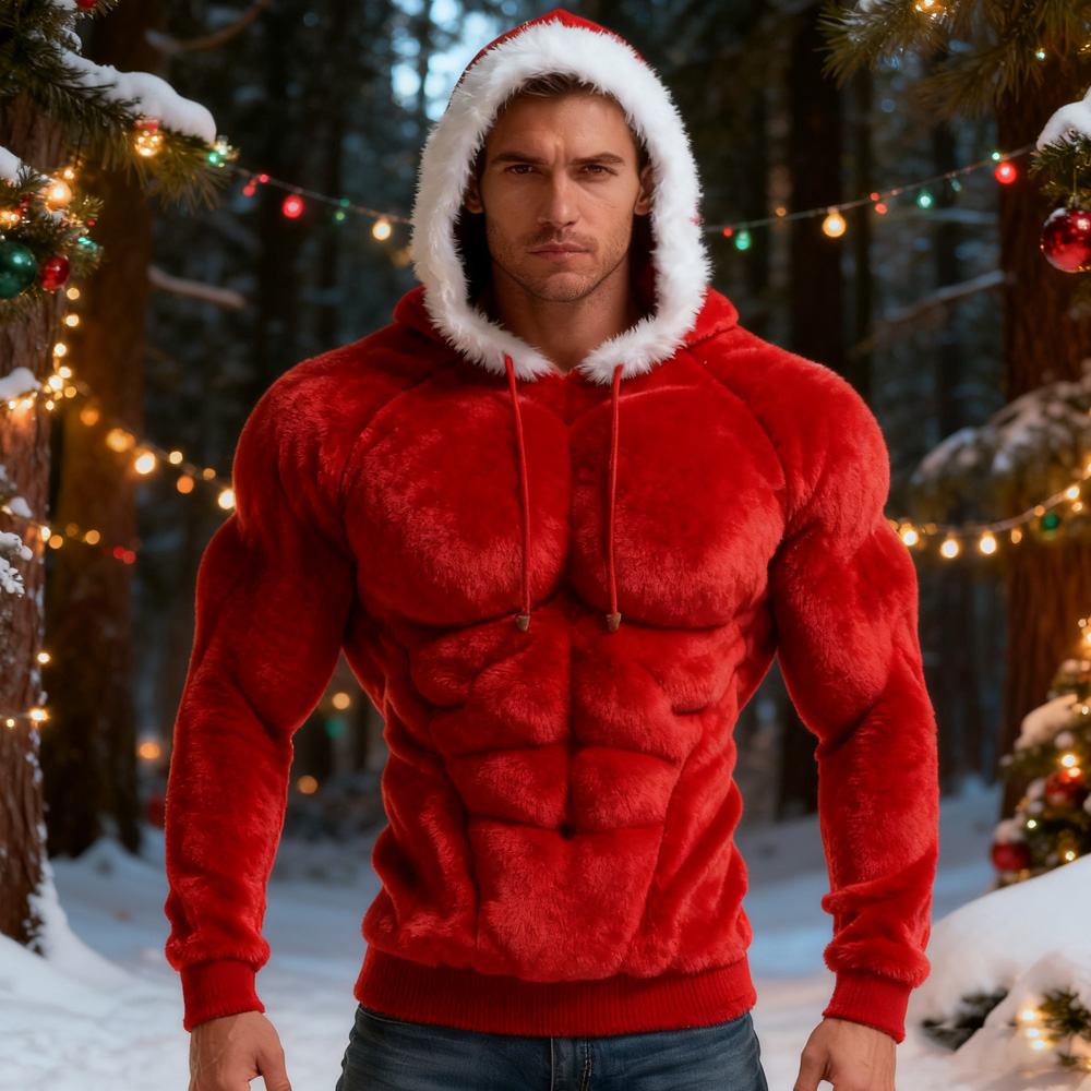 Men's Christmas Season Green Muscle Art Cozy Plush Hoodie