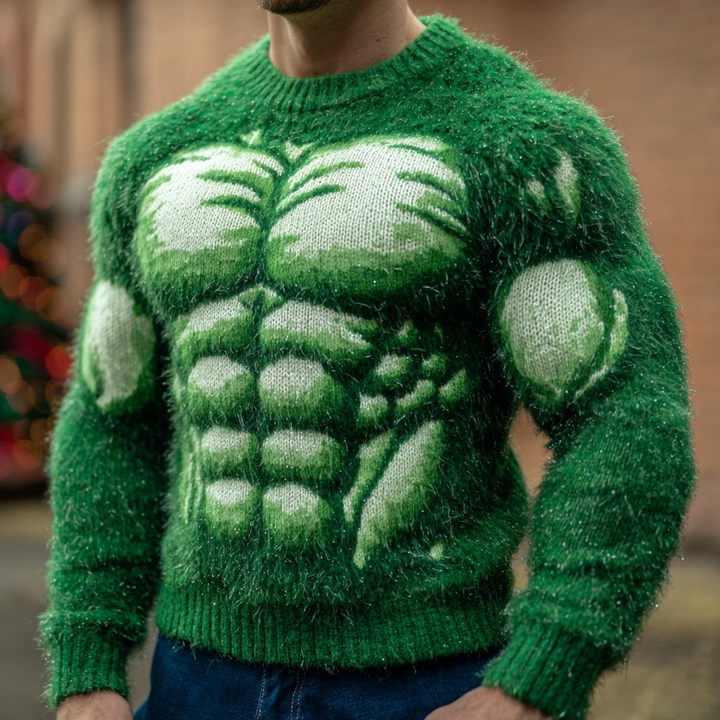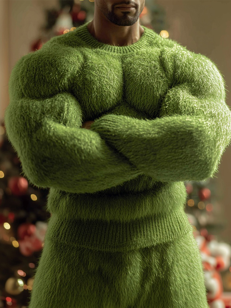 Men's Christmas Season Green Muscle Art Cozy Knit Sweater
