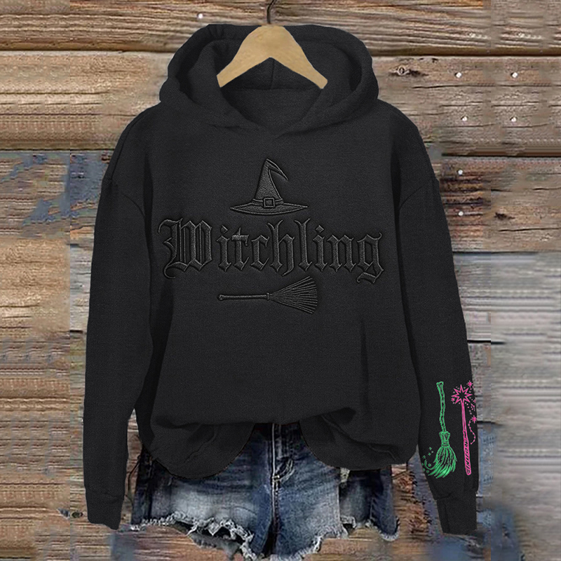 Halloween 2025 Witchling Embroidered Vintage Hoodie