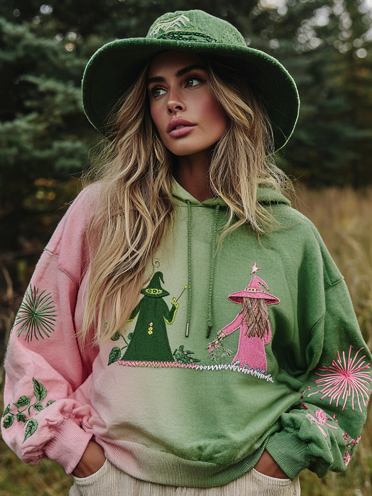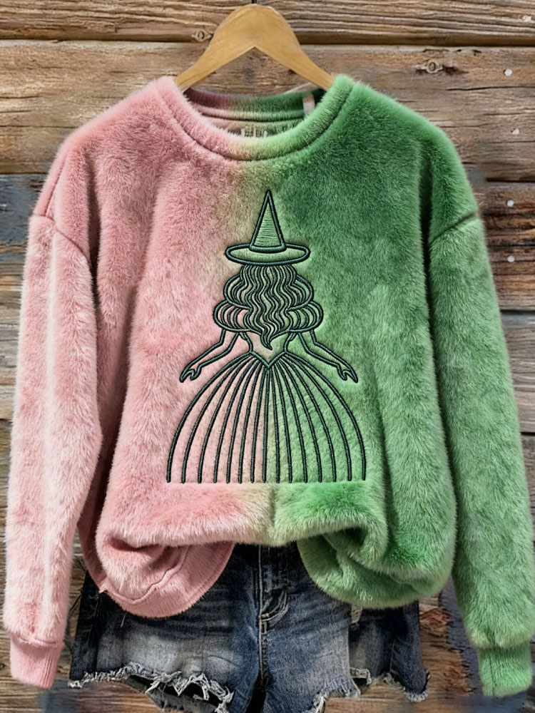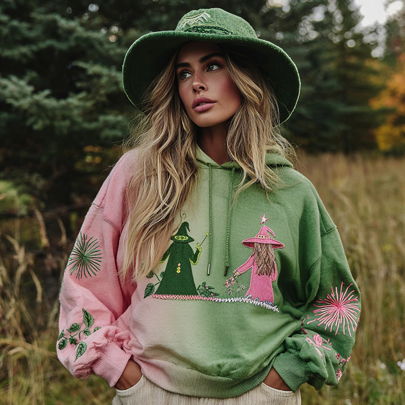 Halloween 2025 Witch Glitter Embroidered Contrast Gradient Sweatshirt