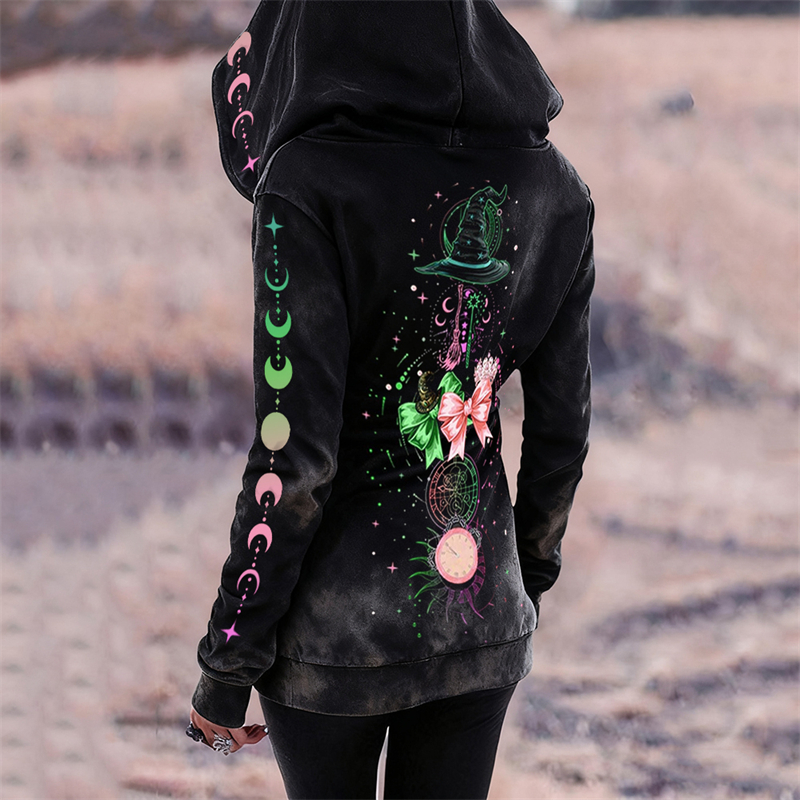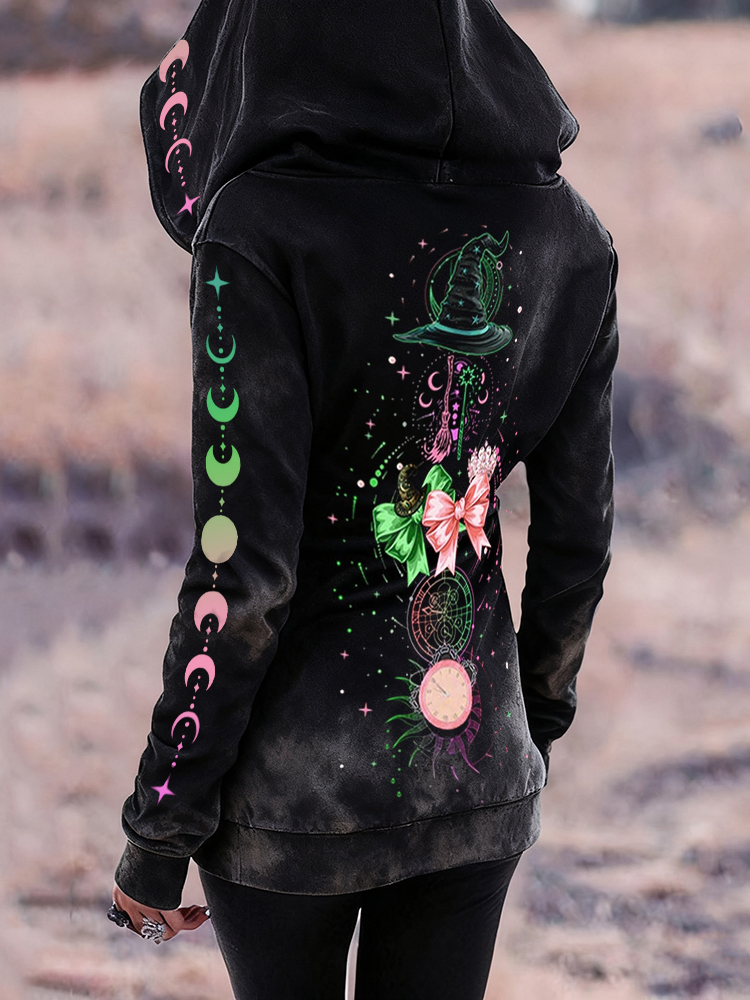 Halloween 2025 Witches Mystical Washed Full Zip Hoodie