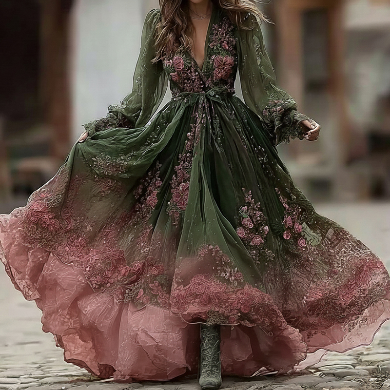 Halloween Rose Floral Gradient Witch Maxi Dress